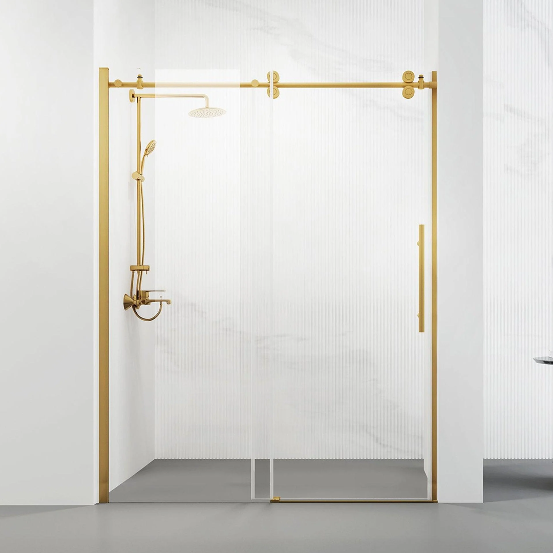 FRAMELESS SHOWER DOOR 60″ X 72″ GOLD WITH TOWEL BAR (60″ X 72″)
